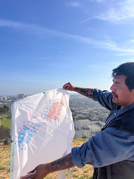 This community-based process has involved giving questionnaires to residents of Sota House and visiting the Natural History Museum together to see marine fossils found in Lincoln Heights (from when LA used to be a mile underwater!). I also helped facilitate an arts activity at an event organized by GROW Lincoln Heights and the Lincoln Heights Neighborhood Council to rally the community against mansion development on Flat Top. I have been in touch with representatives of the Tongva tribe, who have given valuable direction for how I should represent the Tongva's relationship to Flat Top and the past and future of Indigenous life in the area.