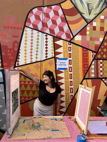 The community mural launch was a beautiful, vibrant gathering complete with speeches from participating artists and organizers (including incarcerated ones), performances by a Palestinian dabke troupe and Indigenous Ohlone dancers, screenprinting, handmade craft vendors, Palestinian and Mexican food, a kids play area with childcare, and crafting stations, including kite- and jewelry-making. There was also a in-depth tour of the mural, where each artist and representatives from participating organizations shared the concept behind their contributions. More than 300 people — community members of all ages and backgrounds — were in attendance.